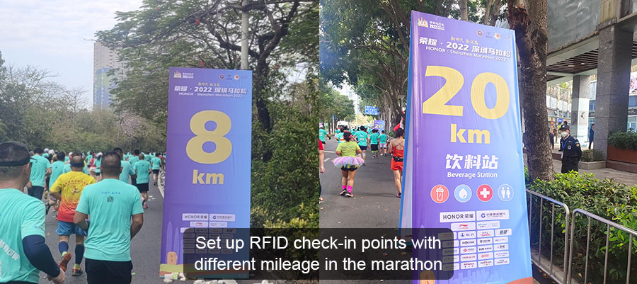 3. Set up fixed RFID readers as check-in points at different mileage points of the marathon. Participants need to complete the check-in when they encounter check-in points on the way. The terminal system records the check-in records of all check-in points, and the final score is valid;